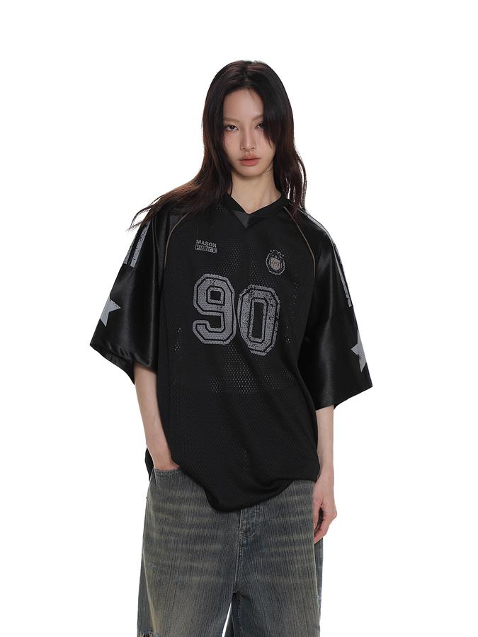 MASONPRINCE American comfortable mesh 90 graffiti star badge rugby jersey loose short-sleeved T-shirt