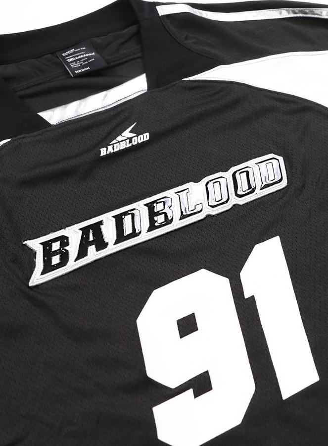 This is a long-sleeve top made from sporty jersey material with silver/white color details.